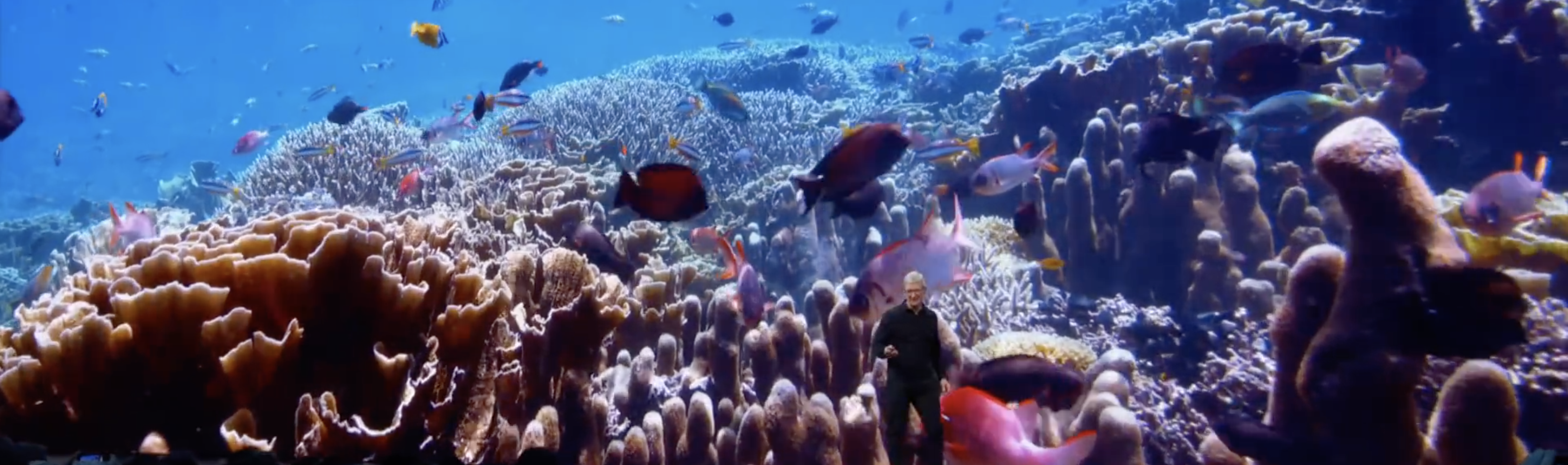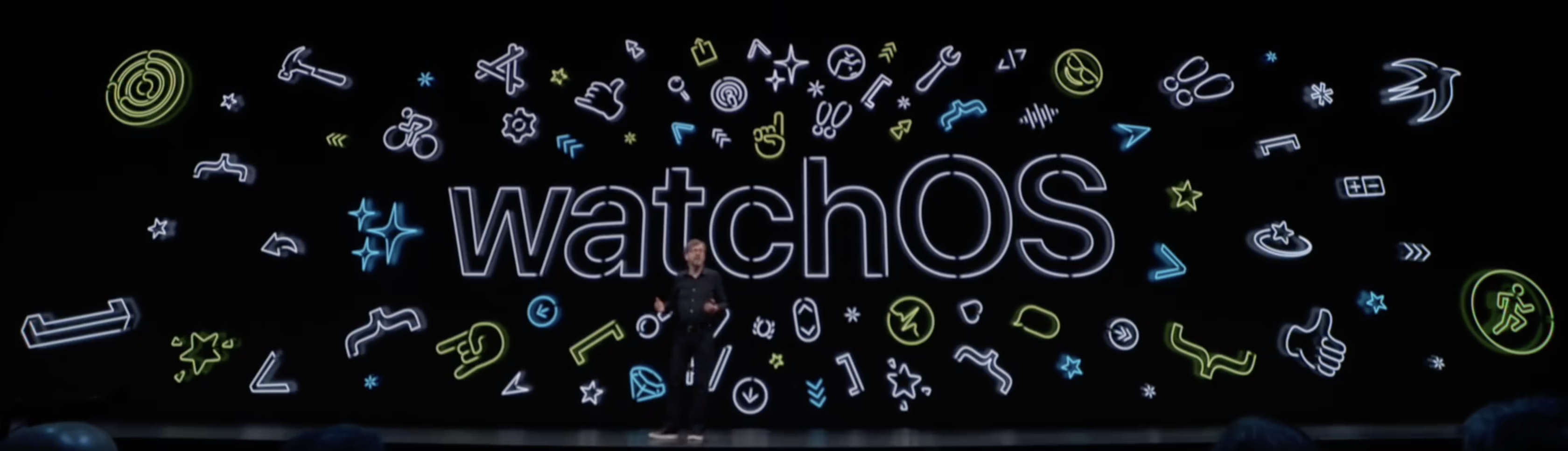 今年的順序跟去年相反,去年以 iOS 和 macOS 打頭陣,不吊人胃口,今年吊好吊滿,以最沒人關心的 tvOS 開場。Redesign homescreen, multiuser,總之就是一些沒什麼技術突破,但是會大大增加使用者體驗的功能。接著是獲得很多掌聲的 controller support,支援使用 Xbox 跟 PS4 的把手,準備迎接九月開始的 Arcade。最後則是新的螢幕保護程式,之前就有和國際太空站合作的外太空攝影,今年和 BBC 合作拍攝了海底的 4K HDR 影片,Apple 仍然願意在這種小地方花心思讓我放心了不少。三分鐘迅速結束第一趴,可見今年有多緊湊。