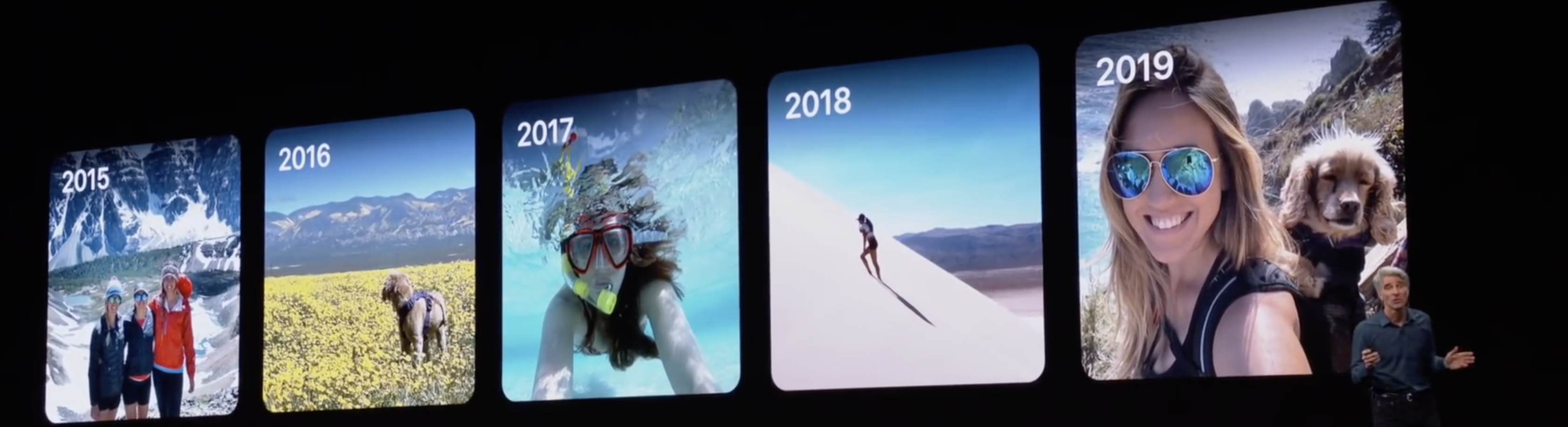 全新設計的相片 app,可以編輯的項目更多、更細,並且影片也同樣可以編輯了,所有的編輯項目,亮度、對比、陰影等等,甚至是濾鏡都可以直接套用到影片。而瀏覽相片的部分,分為年、月、天以及所有照片,月份顯示可以讓你快速回憶各個月發生的事,而年份的顯示方式更會顯示出當年的今天或是這陣子拍攝的照片,我自己是非常喜歡這個功能的,看著以前的回憶總是蠻開心的。