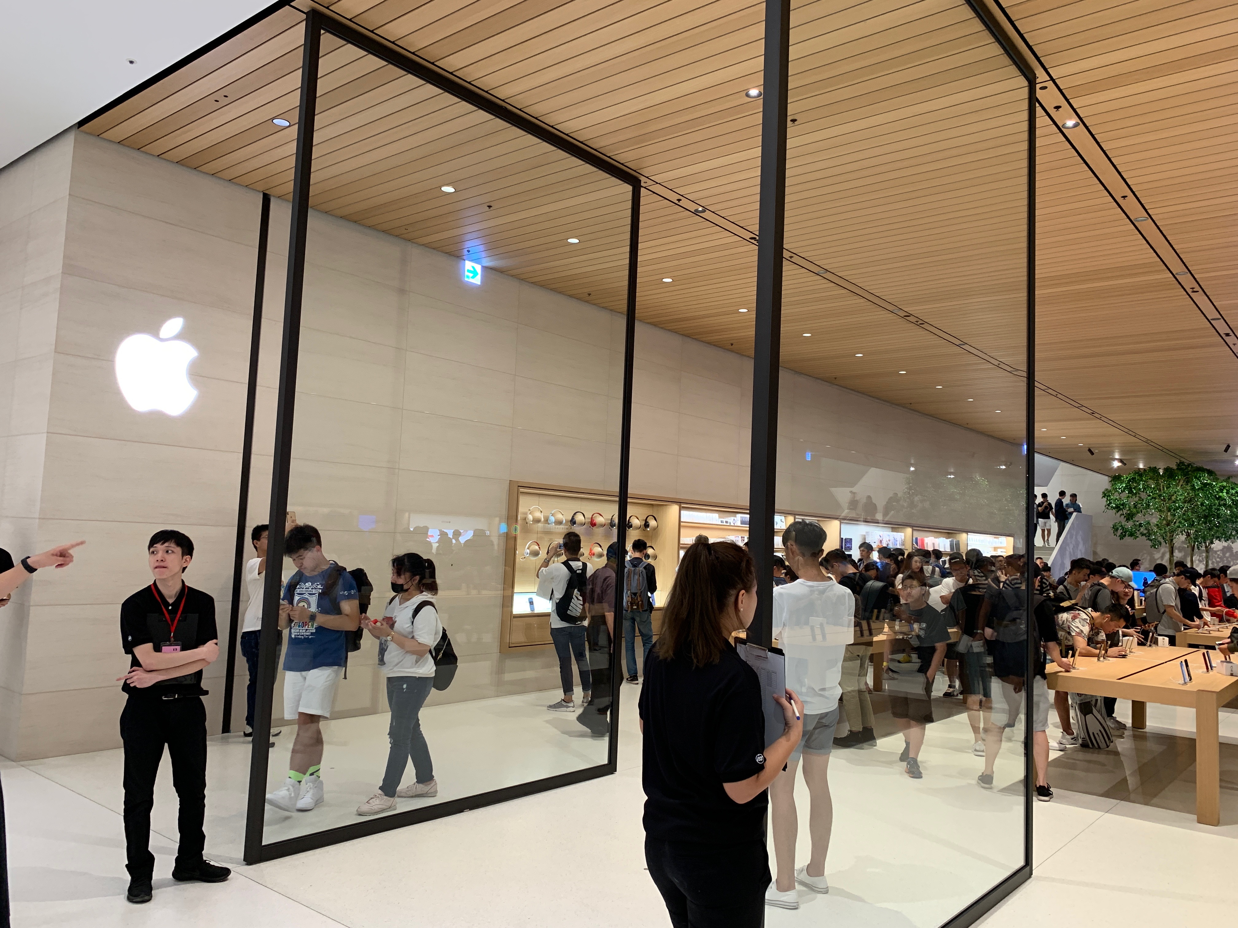 滿足,我只能用這兩個字形容,我充分感受到了所有店員展現的熱情,也感覺得到一起排隊的人都跟我一樣興奮,那天我穿的是前年在 Apple Infinite Loop 1 舊總部買的 Siri 短T,我有看到許多人穿的也是在那裡或是 Apple Park 買的限定 T,那種看到對方的衣服然後相視一笑的感覺我想可能不太會再有機會體驗到了。
