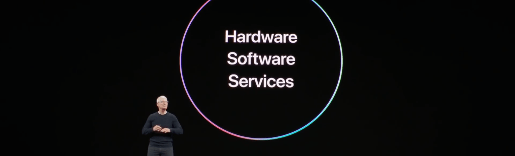 這次的開場 Tim Cook 說因為有很多東西要發表所以跳過了他的例行 update,但是整個發表會只有一小時42分鐘,我覺得他應該有足夠的時間開場才對。接著就是 Arcade,只要月費 $4.99 其實非常划算。再來是月費同樣是 $4.99 的 tv+,並且現在買任何新裝置時都會送一年的免費訂閱。