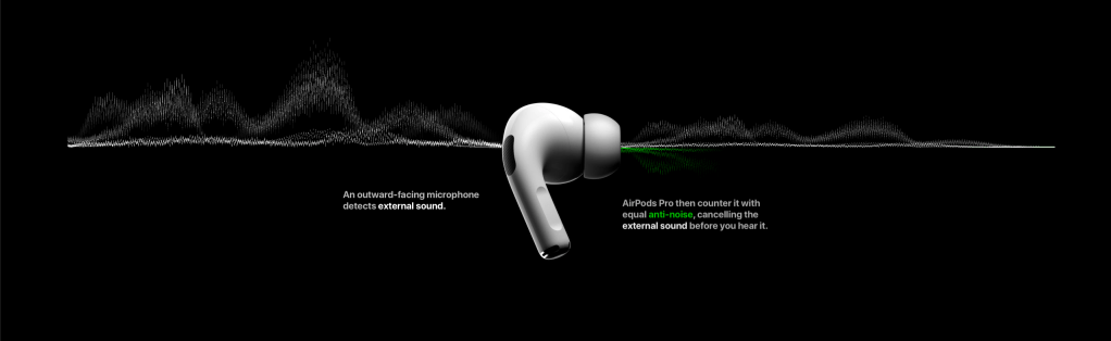 主動式降噪不是什麼新科技了,但是目前大部分還是出現在耳罩式耳機比較多,簡單來說就是用麥克風偵測音波,再播放相反的波形來抵銷掉聲音,所以最能抵銷掉的是波型固定的背景噪音,像是城市的喧囂、飛機上的噪音、冷氣的低頻音等等,這些基本上能夠百分之百抵掉,但是當有人跟你說話,或是有一台車從旁邊開過去的時候,還是可以聽到一點點聲音,不過也已經小聲到基本上一放音樂就都聽不到了。
