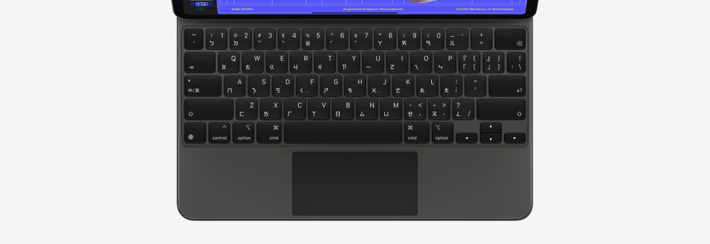 正當大家覺得今年的 iPad Pro 只會是例行硬體更新,加上跟 iPhone 11 Pro 相同的三鏡頭組的時候,Apple 給了我們一個非常理所當然的驚喜。我在 iPad Pro 2018 心得 講過,iPad Pro 本身的硬體已經無可挑惕了,所以這次的驚喜是鍵盤和觸控板。光是外觀就非常特別,利用磁力浮在空中,且可以任意調整角度,還有額外一個供電用的 Type-c 孔。鍵盤部分居然是有背光的剪刀式鍵盤,不再是之前那個半吊子手感很微妙的鍵盤了,比較可惜的一點是因為尺寸關係還是沒有加上最上面的那一排功能鍵。接著是觸控板,在 iPadOS 13.4 加入了新設計的游標,這個游標我真的不知道怎麼用文字描述,大家可以去官網看一下或是到時候實際去店裡操作。加上了觸控板的 iPad 可以做到更細部的操作,尤其是在文字編輯的時候,絕對是非常加分的。