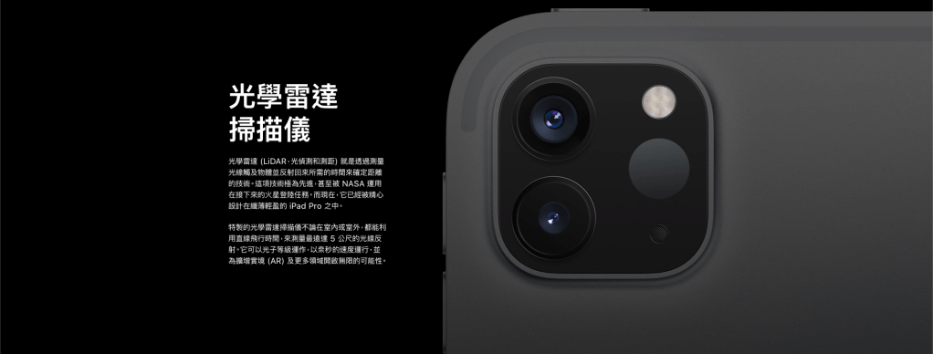 接著相機部份,加上了一顆超廣角鏡之外,是原本以為在 9 月才會出現在 iPhone 12 Pro 的 Time of Flight 光學測距儀,他可以精準的測量五公尺內物體的距離,加上 ARKit 可以達到近乎完美的 AR 體驗,就等 Apple 推出更多 AR 相關的應用了。理論上加上軟體之後可以直接拿這台 iPad 進行 3D 掃描建模,3D 建模除了 AR 之外還有非常多的用途,我也很期待今年 9 月 iPhone 也加上這個技術。