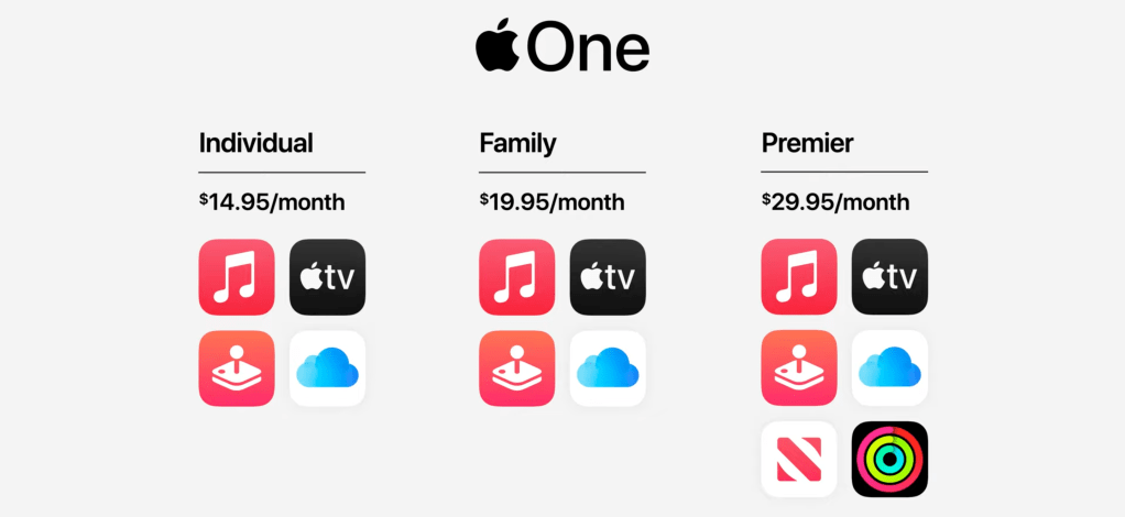傳聞中會推出的訂閱服務組合包,但我認識的人裡大部分這四個服務全部都沒訂,所以好像沒什麼用,我自己現在是有訂 Music 跟 iCloud 200GB,一直在猶豫要不要試試 Arcade,但這個價格我感覺其實還是沒有很划算,再看看。另外台灣因為沒有 News 跟 Fitness+ 所以沒有 Premier 方案。