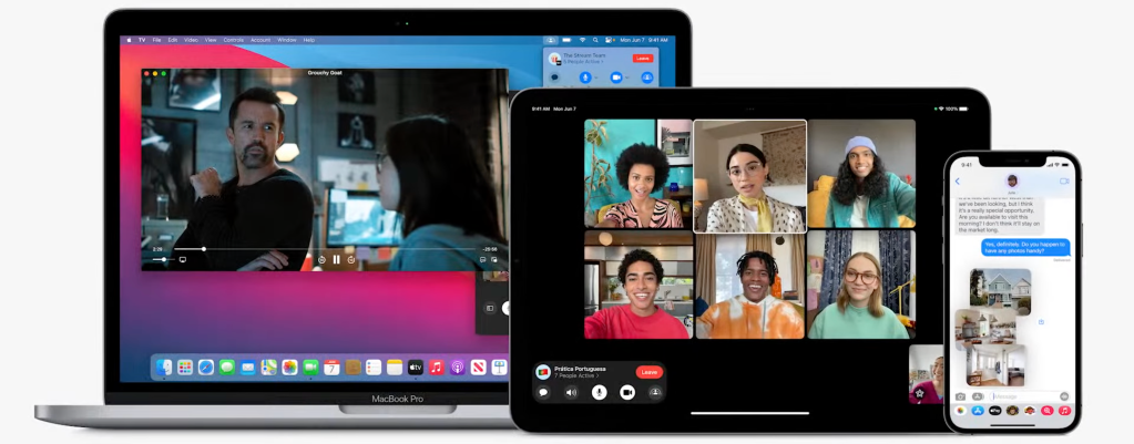 這次的第一個大主題是 Staying connected,疫情以來,視訊突然比起以前重要了很多,打頭陣的就是 FaceTime 的一連串新功能。群組 FaceTime 支援去年推出的空間音訊,戴著 AirPods Pro 的時候講話的人的聲音會聽起來像是從他在畫面上所在的位置發出來的。還有會把人聲獨立出來的降噪跟人像模式,這兩個放到現在也都算是一些基本功能了。新增了 FaceTime Link 可以透過一個 URL 分享群組 FaceTime 的邀請,可以預約時段加入行事曆,甚至連 Android 和 Windows 用戶也可以透過瀏覽器加入 FaceTime,看來 iMessage for Android 不遠矣。最後是 SharePlay,可以和 FaceTime 通話對象一起聽 Apple Music、一起看 Apple tv+、也可以分享螢幕,都整合在 FaceTime 的介面中。其他通訊軟體都有支援類似的功能了,但這次 Apple 開放了 SharePlay API,我相信會有許多開發者改用這個 API 來讓這功能和 iOS 整合得更好,也會讓尚未支援這項功能的 App 更願意支援,開發和維護上都簡易許多。