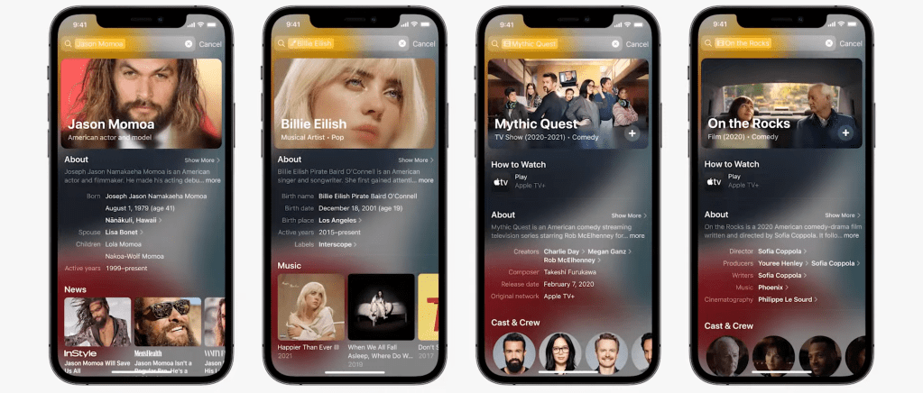 相片出乎意料的得到了不少的新功能,現在有內建的文字辨識 Live Text,可以選取、複製等,甚至還能直接按電話號碼撥出,而且對網站上的圖片也能使用,非常方便的一個功能,開放時會支援英文、簡體、繁體中文、還有法意德西葡這些語言。除了文字辨識之外也加入了類似 Google Lens 的圖像辨識,可以直接從圖中查詢像是狗的品種、花的名字、地標和藝術品等等。有了這些影像辨識,相片也就可以整合到 Spotlight 之中,讓你可以更方便的找到想找的相片。在這邊就順便提到了兩句 Spotlight,把搜尋的內容整合得更好了。