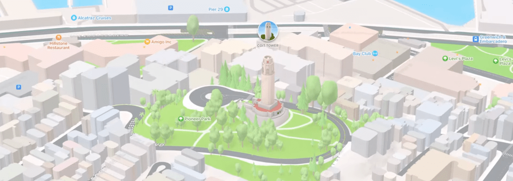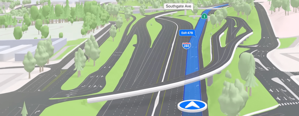 新的 Apple Maps 加入了更完整的 3D 地形資料,會顯示出坡度,地標甚至還有立體建模,而且建的很用心,夜間模式還會有光影效果,美的不忍直視。不論在手機或是 CarPlay 的導航模式下都會顯示出這些立體建模跟地勢,還有複雜的交流道和高架也都會用立體的方式顯示,這才叫導航!第一波上線的只有美國的七個城市和倫敦,讓我們看看五年內輪不輪得到台灣吧,唉。最後大眾運輸的導航似乎也更方便了,也加入了和 Google Maps 一樣的步行 AR 導航。