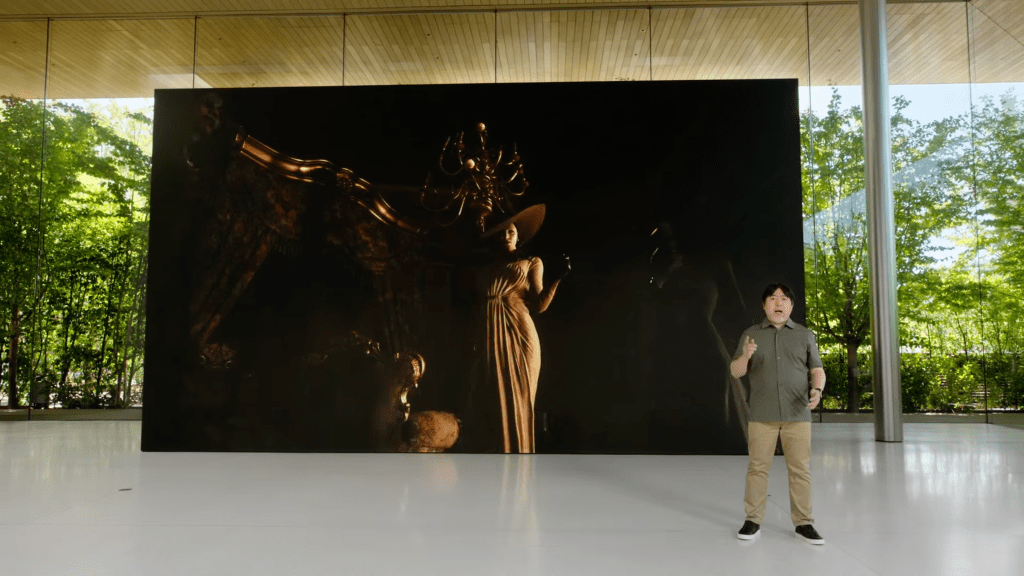 工作環節結束,讓我們進入到 Gaming 環節,唉 Gaming on a Mac。這麼說吧,我想大家也都知道了,遊戲一直以來都不是 Mac 的強項,甚至是幾乎不用想要在 Mac 上玩到什麼好遊戲,一是支援 macOS 的遊戲少之又少,二是 Mac 的 GPU 就不是針對遊戲的,所以相對同級的 Windows 筆電,遊戲體驗是差了非常多。就算 Apple Arcade 越做越大,但他跟大家真正想要玩到的電腦遊戲還是相去甚遠,Apple Arcade 中的大作充其量就是非常高級的手遊而已。那就來看看這次 Apple 對於 Gaming 有什麼要講的吧。首先是由於現在 Apple 全線產品使用的都是相同架構的處理器,所以遊戲開發者可以非常輕易的讓遊戲從 iOS 一路擴展到最高階的 M1 Ultra,讓用戶在所有平台上都能玩到同一款遊戲。Apple 的圖像是由 Metal 在處理,Metal 3 現在會使用 Upscaling 來提升解析度,還有幾個新的 API 來提升材質跟效能。而現在也宣布惡靈古堡 8 將會在今年下半年登陸 macOS,這應該算是第一款支援 Mac 的次世代 3A 大作了。由卡普空的高階技術主任上台解說了一小段惡靈古堡 8 在 Mac 上的表現,全程日文英字,讓我瞬間以為我在看任天堂 Direct,有夠出戲。看了他的畫質表現,嘛,差強人意吧,至少 Apple 開始願意找這些 3A 開發商來開發 Mac 版了,沒錯,我認為絕對是 Apple 花錢請他們特別開發 Mac 版的,而這也是 Apple 想打入 PC 遊戲市場唯一的一條路。
