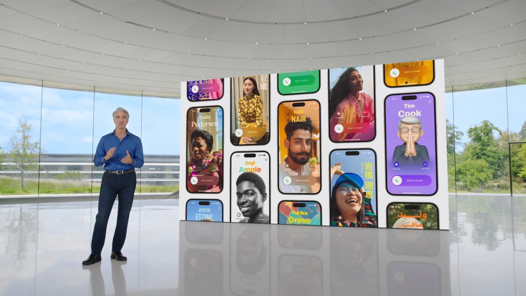 硬體結束來到軟體環節,大家最愛的 Craig 終於登場了,希望 Craig 還能再戰 10 年。iOS 17 首先為電話、FaceTime 和訊息 App 帶來幾個重大更新,提醒了我們原來 iPhone 是台電話啊。現在你可以在通訊錄中設定自己的通訊錄海報,有點類似 iOS 16 自訂鎖定畫面的方式,可以自訂名字的字體,設定你的照片或是 Memoji,而這個海報除了在好友的通訊錄中顯示之外,在來電顯示時也會顯示,並且他有配合 CallKit,所以有使用 CallKit 的第三方 App 也都可以使用這樣的顯示效果,希望 Line 快一點支援。