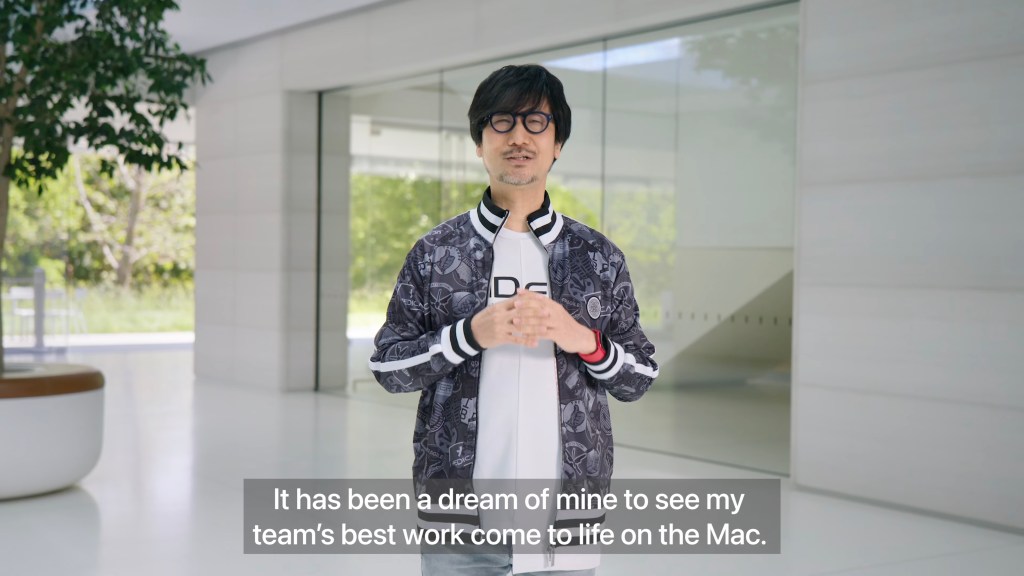 下一站,遊戲,同樣是已經變成一個梗的 Gaming on Mac,在去年 WWDC 上宣布推出 Mac 版惡靈古堡 8 之後,我認為是 Apple 開始認真要來把未來新的大作拉到 Mac 上了。今年推出一個新的遊戲模式,會強化針對遊戲的 CPU 和 GPU 運算,並大幅降低 AirPods 跟控制器的延遲,不是欸你可以降低 AirPods 的延遲為什麼不隨時降,開遊戲模式才降低有點怪吧,難道對算力跟續航影響會很大嗎?再來是一個大的,Metal 現在推出一個新的 Game Porting Toolkit,讓開發者可以快速轉換平台,把 DirectX 的遊戲更輕易的轉移到 Metal。目前看到已經有人用這個 Toolkit 直接在 Mac 上開各種大作,甚至連 Cyberpunk 至少都可以跑到 40 fps 以上了,這裡是指遊戲開發者完全沒有做任何優化沒有做任何改動的情形喔,就像是 Rosetta 直接硬是把 Windows 的程式轉譯到 Mac 上來開,這次還多了圖像的轉譯,光是能跑就已經是一件很離譜的事情了,還能跑到 40 fps 基本上已經算是可以直接遊玩的程度了,不光是 Apple 晶片的效能離譜,Apple 也再一次展現了他們轉譯軟體有多噁心。最後沒想到會在蘋果發表會上看到小島秀夫,宣佈了今年下半年死亡擱淺會登陸 Mac App Store。