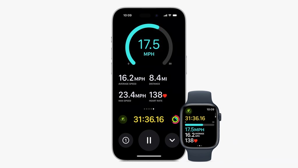 新增新的運動項目似乎也變成了每年 watchOS 的慣例,去年是搭配 Watch Ultra 的鐵人三項,今年新增了單車,手錶現在可以跟有藍芽功能的單車連線,顯示更多資訊,而且開始單車運動的時候,iPhone 還會直接變成你的單車電腦,讓你可以架在車上直接看時速等等的資訊,太方便了吧,騎腳踏車的人可以少掉一些第三方 App 了。
