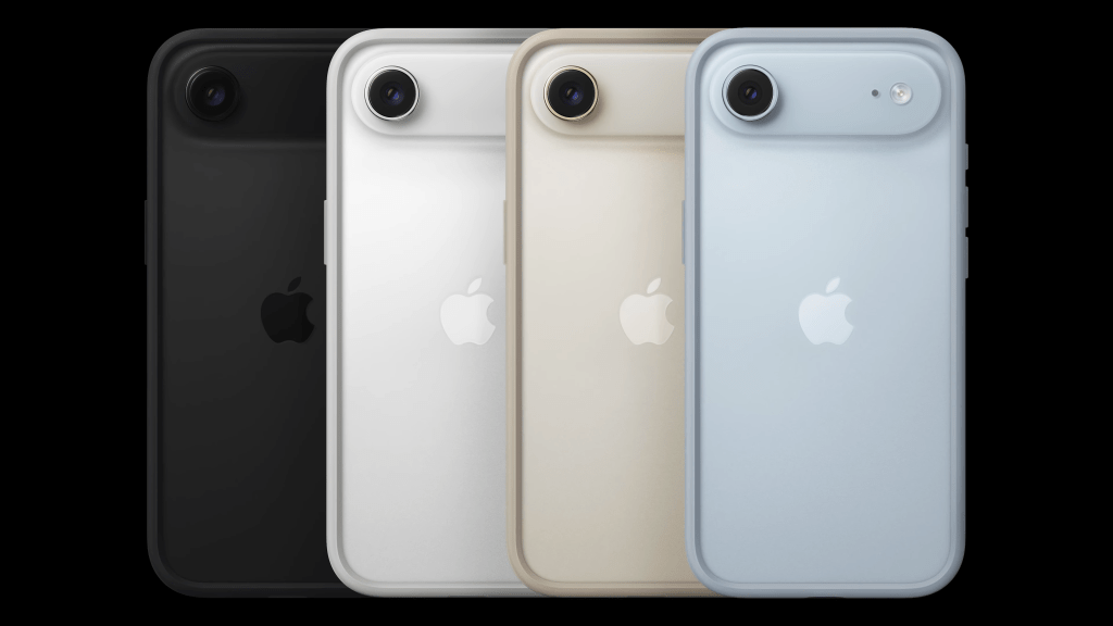 經歷了兩年 mini 和三年 Plus,最終來到了全新的 Air。厚度僅 5.6 公釐,比 iPhone 6 還要薄,是有史以來最薄的 iPhone,重量也只有 165 公克。並且硬體規格幾乎毫無妥協,和 Pro 系列相同的 120Hz ProMotion 有隨顯的 Super Retina XDR 顯示器,峰值亮度同樣是 3000 尼特。背板改為超瓷晶盾,防護力是以前背面玻璃的四倍,而正面升級為超瓷晶盾 2,帶來 3 倍的抗刮能力。所有的主要元件幾乎都集成在機身上方的擴展平台,將機身空間留給高能量密度電池。外框由拋光鈦金屬構成,號稱是目前爲止最堅固的 iPhone。